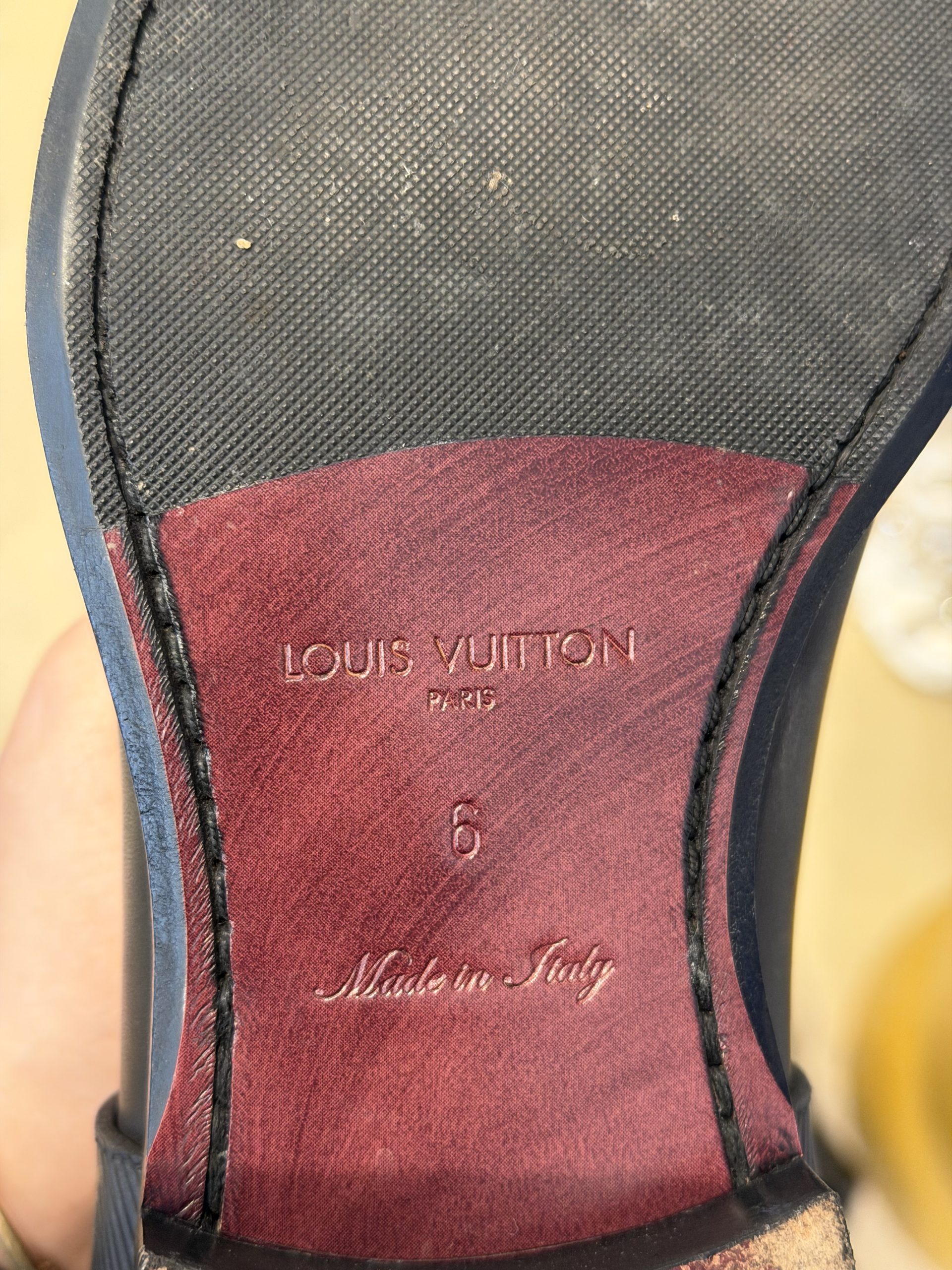 Semelle en cuir rouge Louis Vuitton.