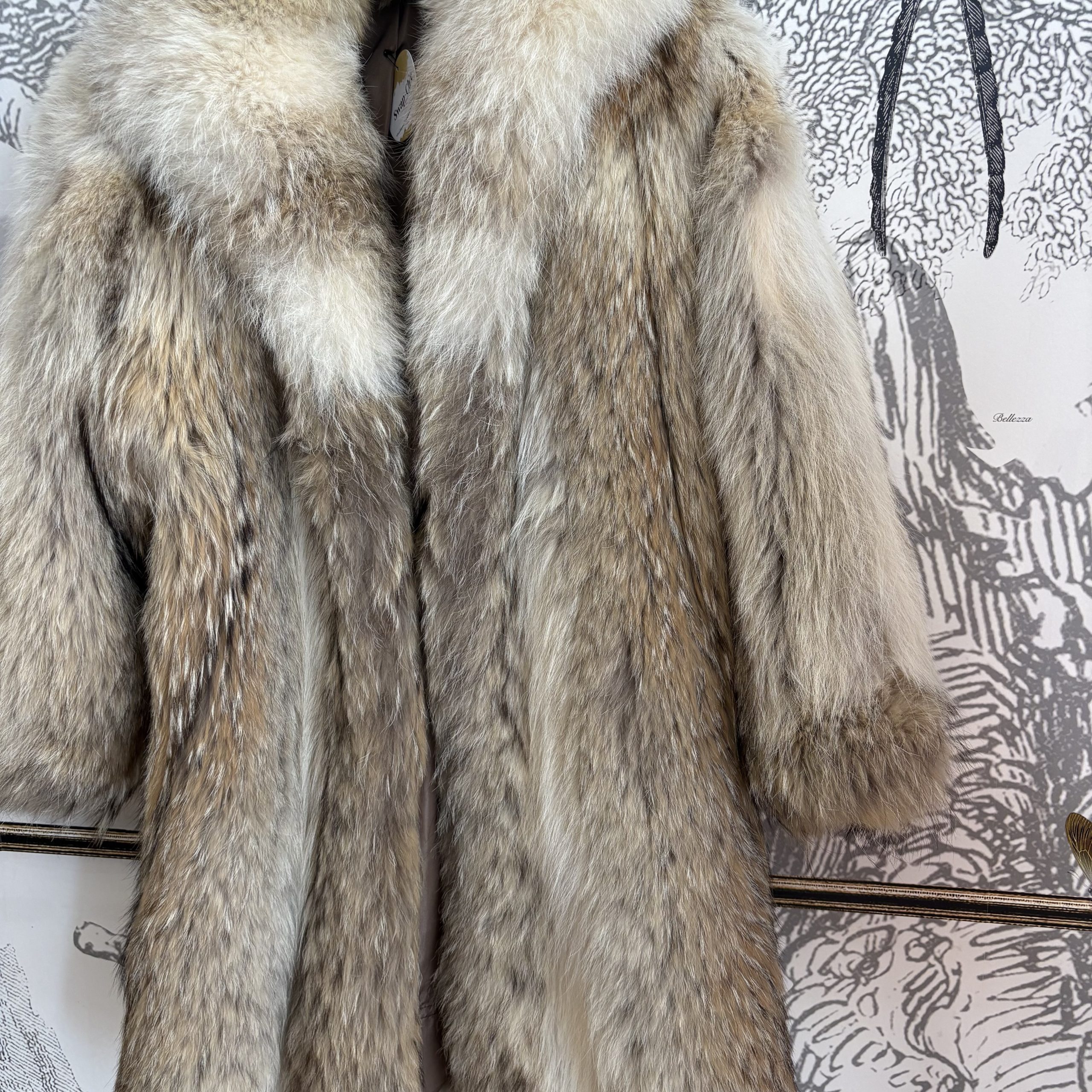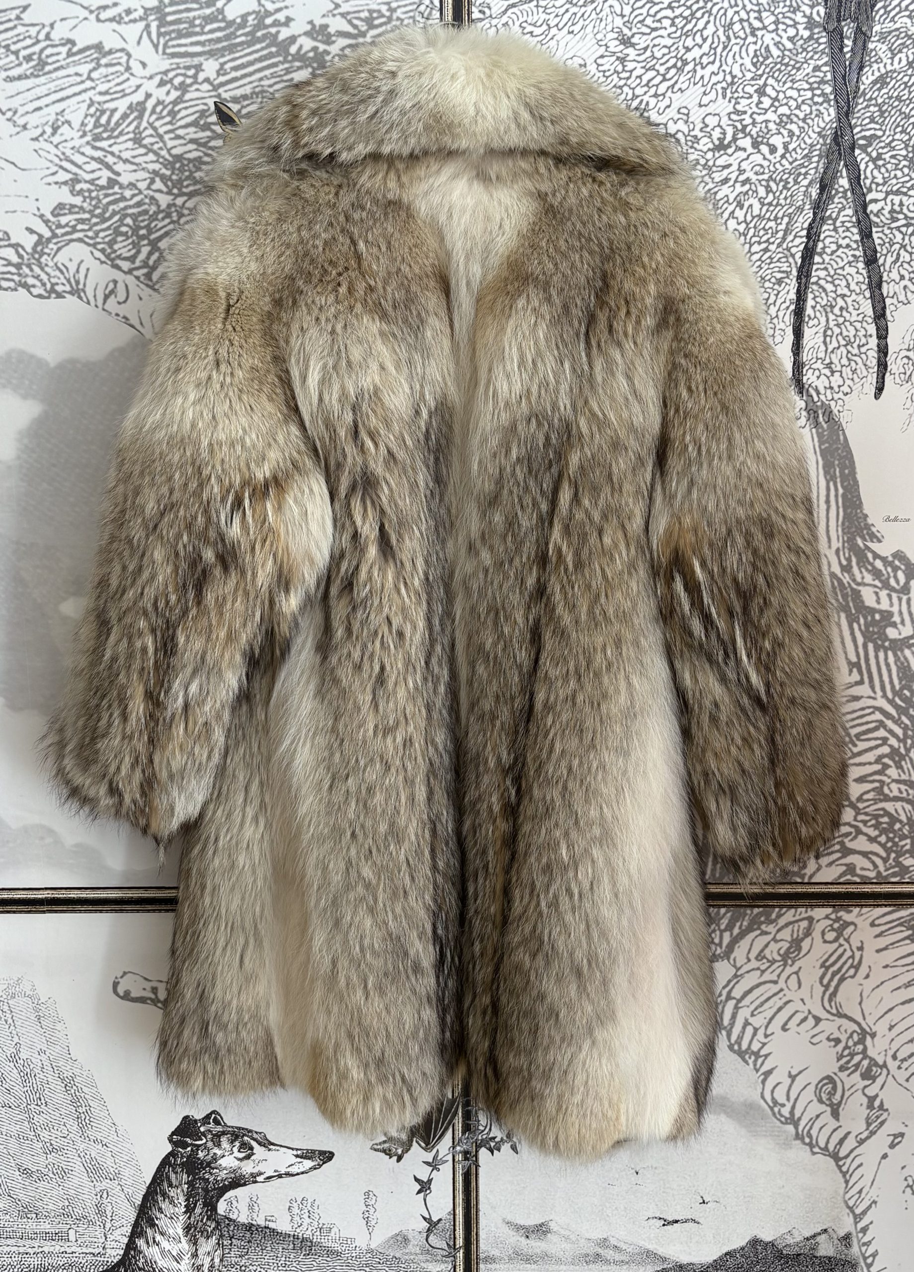 Confectionné en véritable fourrure de loup. Pièce vintage d’exception, il révèle de somptueux dégradés naturels allant du marron profond au beige doux, offrant un jeu de nuances unique. Sa coupe élégante et intemporelle en fait un vêtement à la fois luxueux et chargé d’histoire, parfait pour les amateurs de mode rare et authentique
