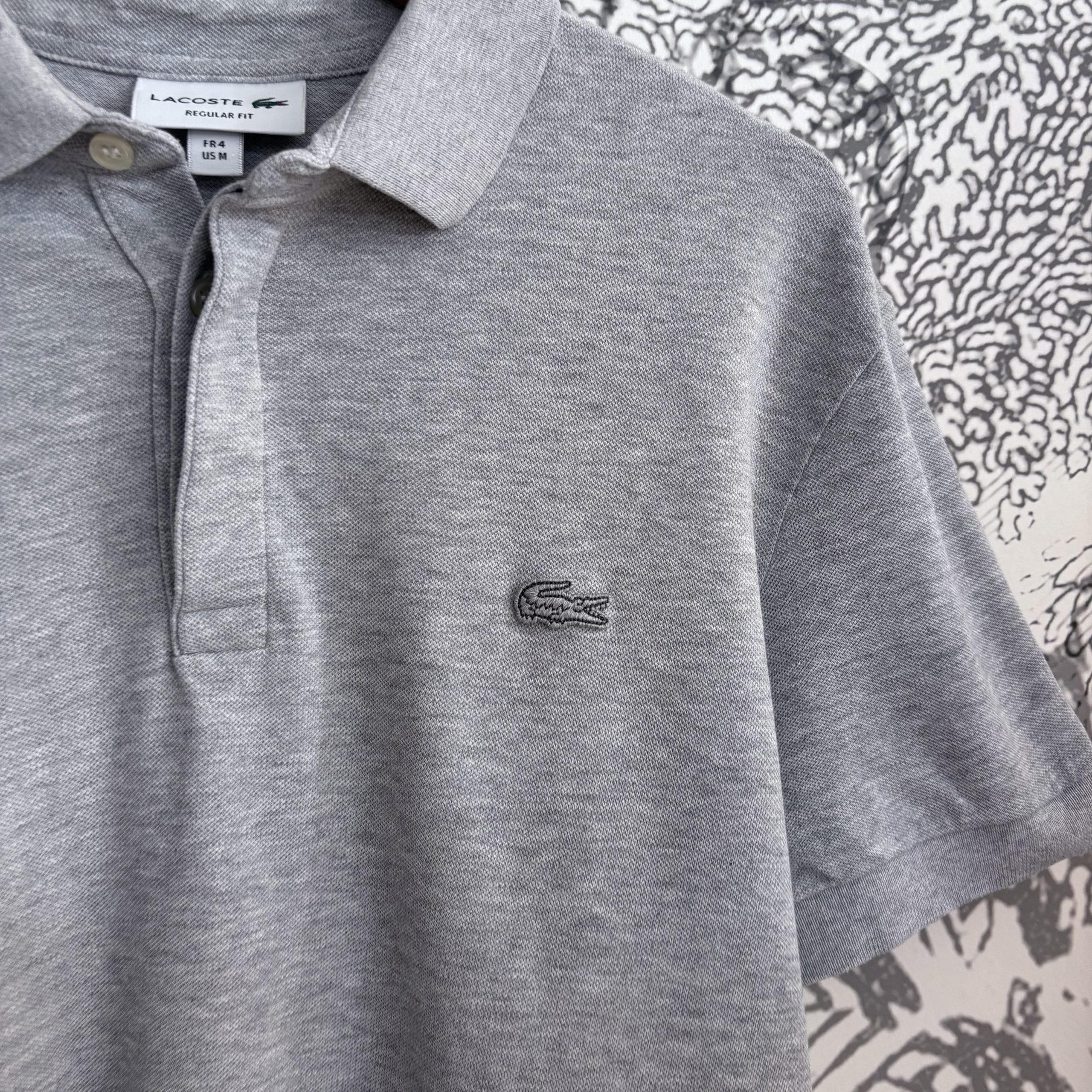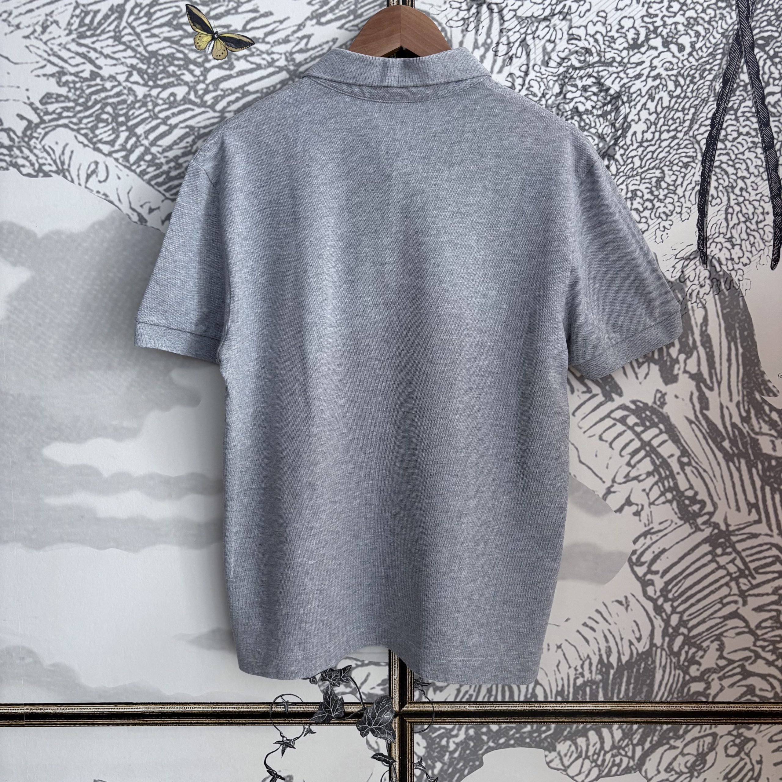 Dans une teinte grise raffinée, rehaussé du logo crocodile brodé en gris avec contour gris foncé pour un effet subtil et élégant. Les boutons nacrés apportent une finition sophistiquée à ce modèle à la coupe classique