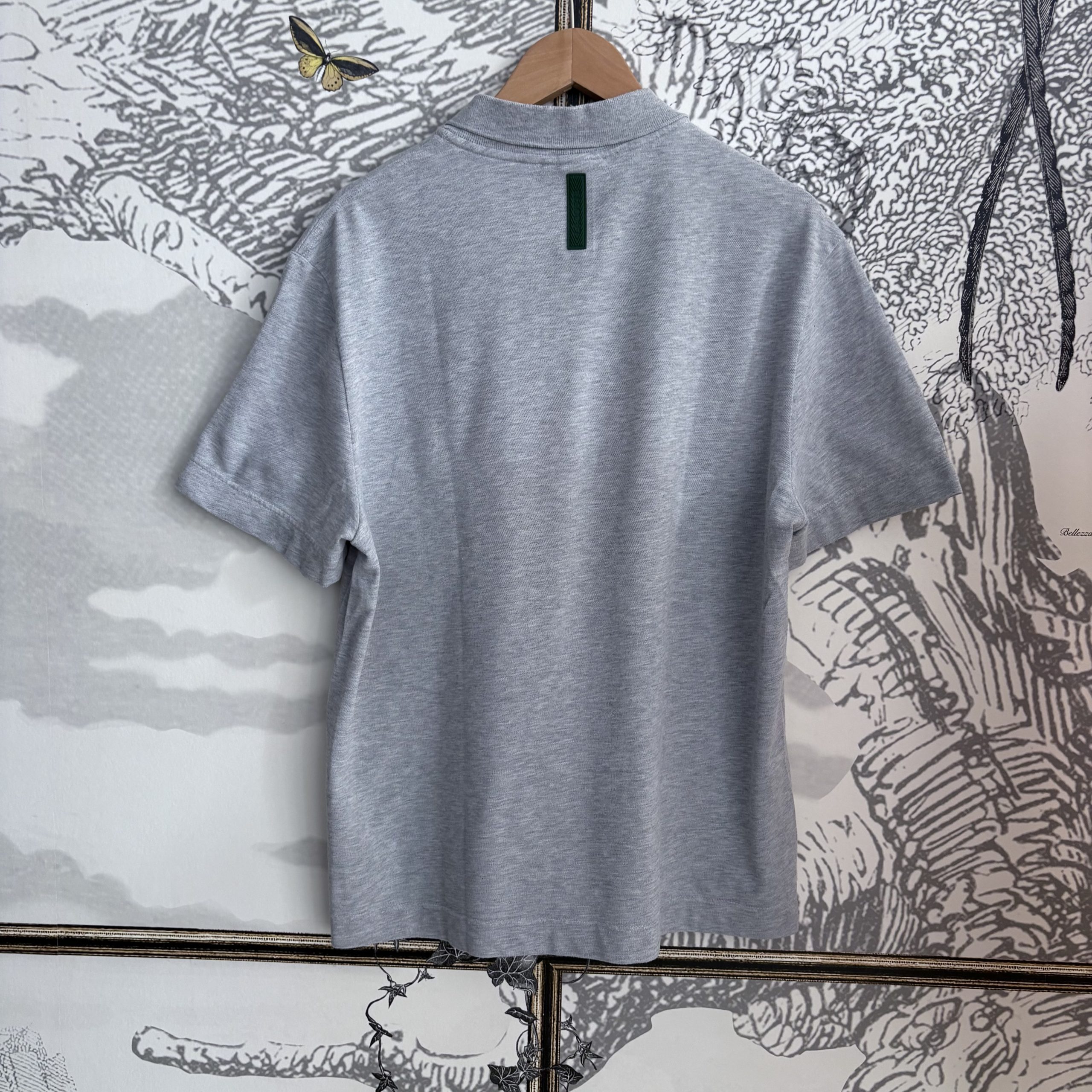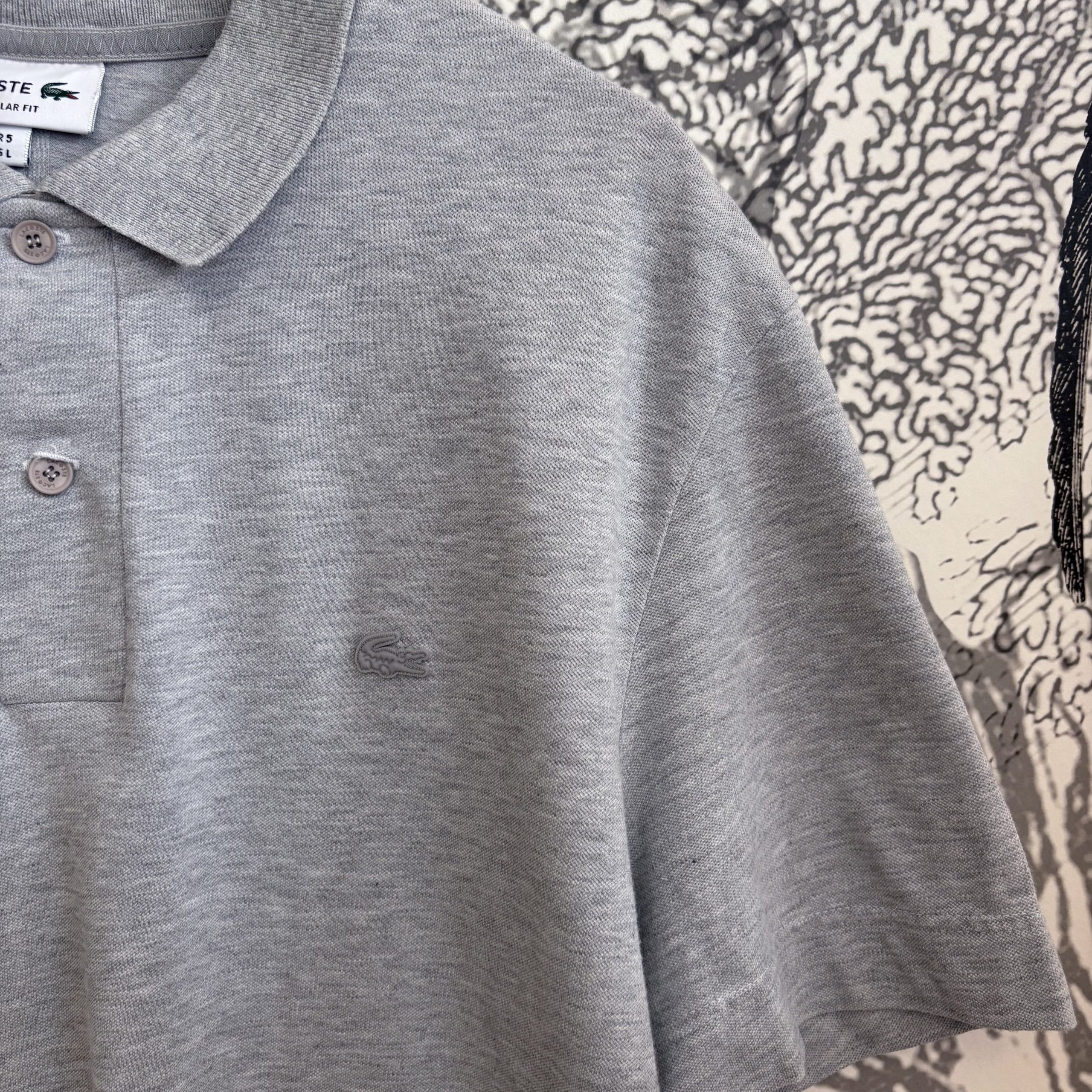 En gris uni, orné du crocodile iconique en caoutchouc ton sur ton à l’avant.