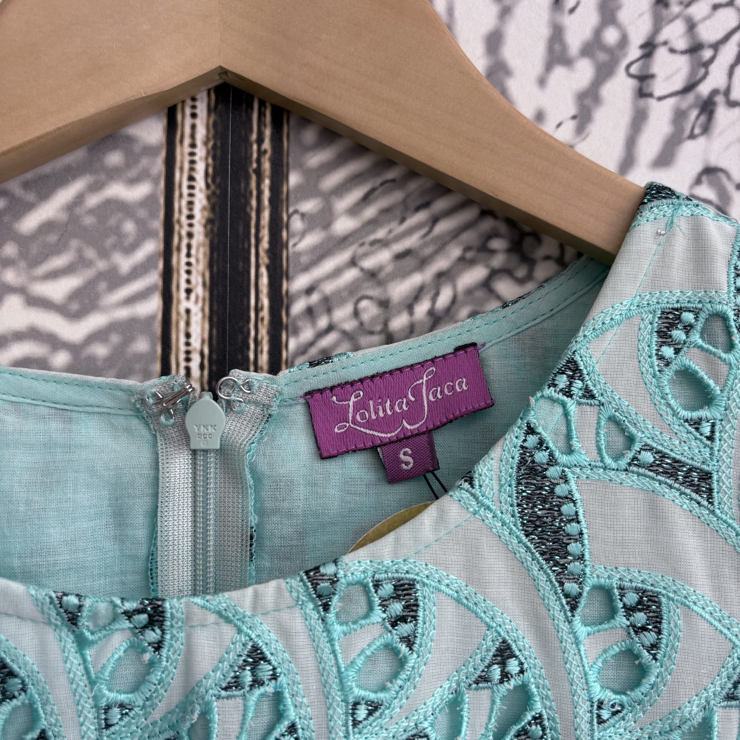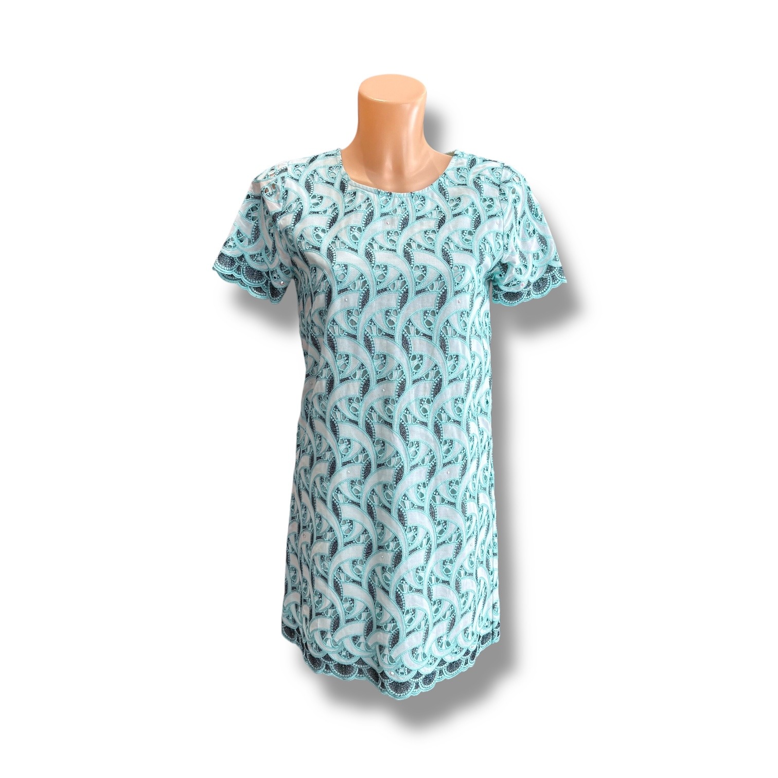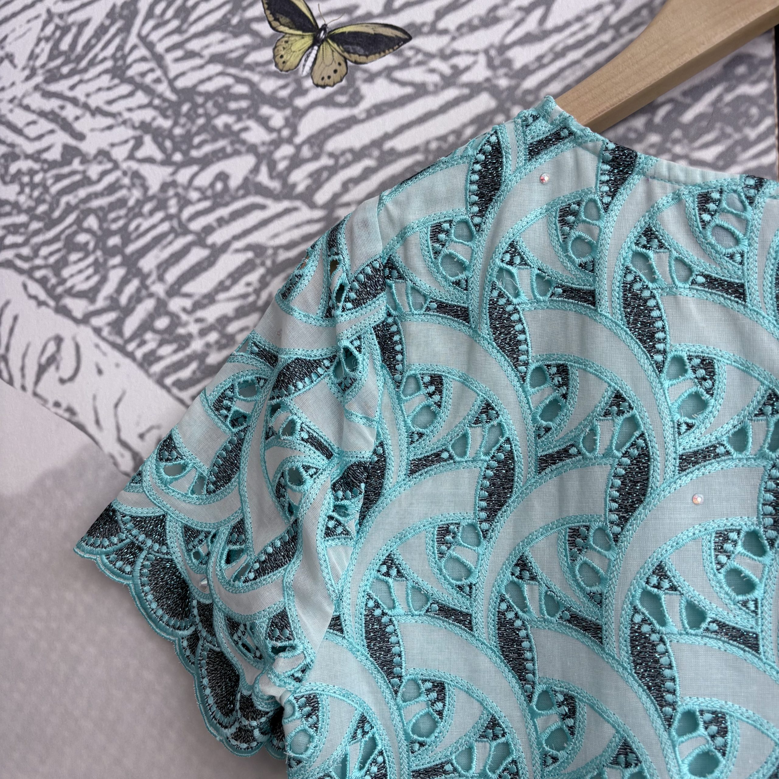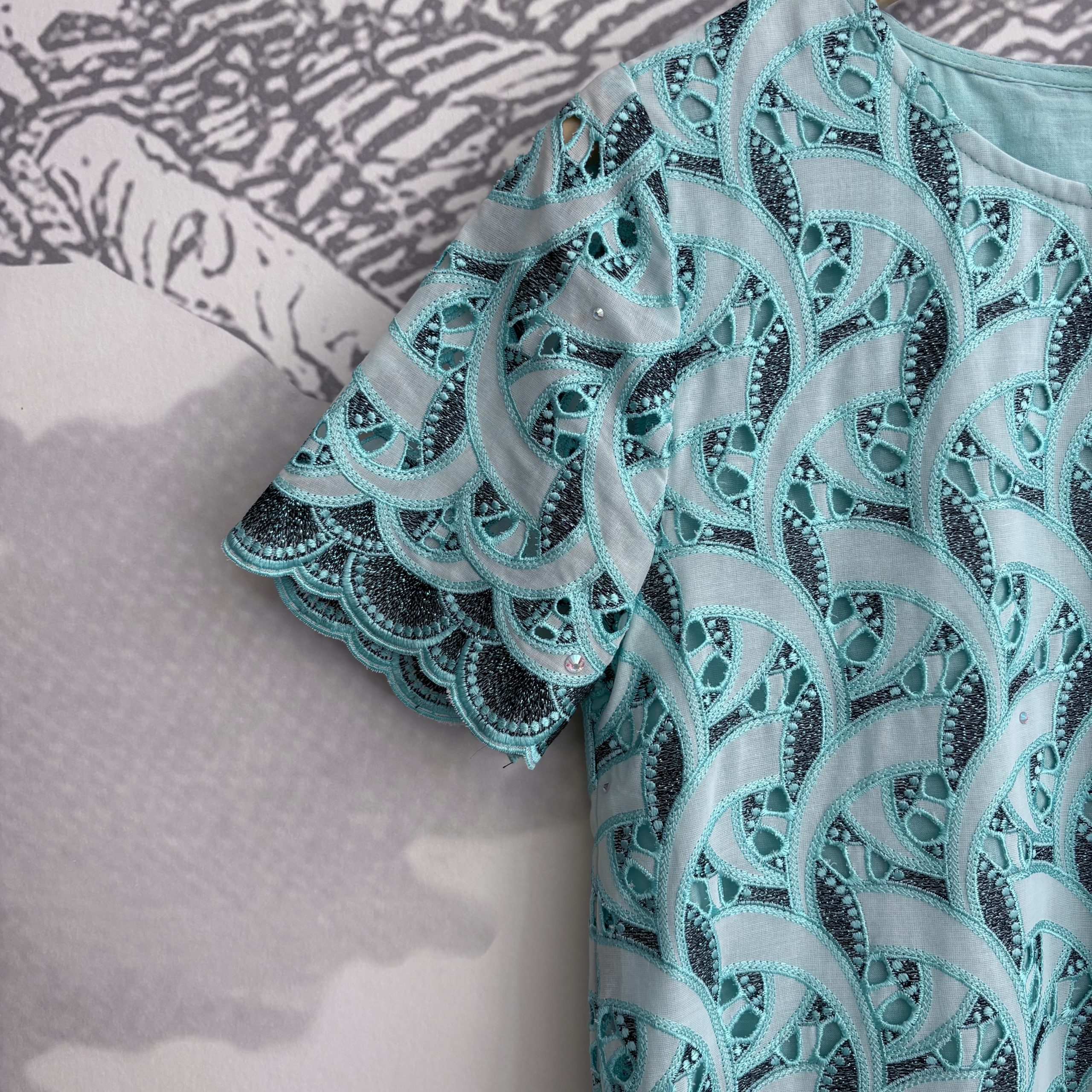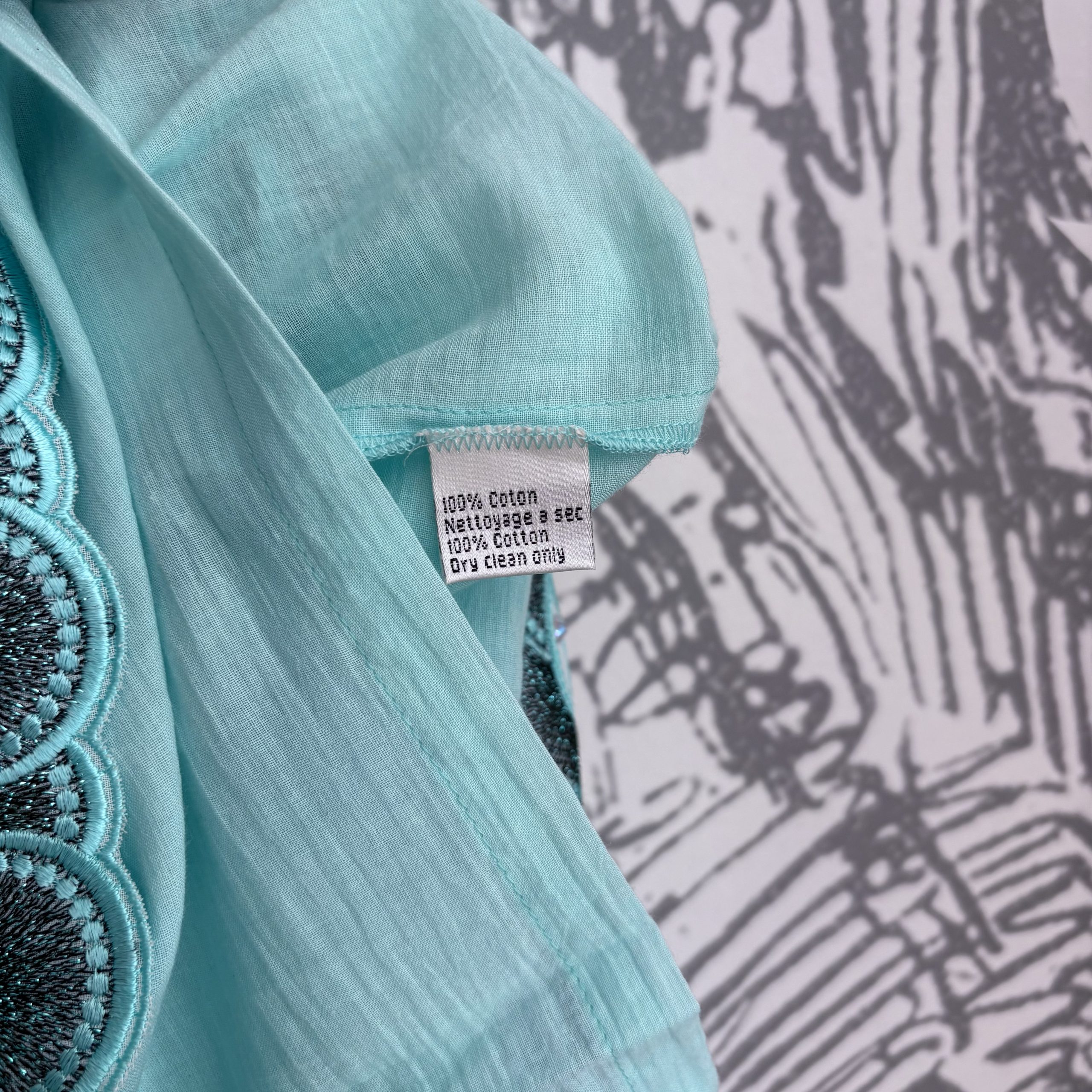 Sa teinte bleu intense est sublimée par des détails en paillettes et strass, qui apportent une touche lumineuse et festive