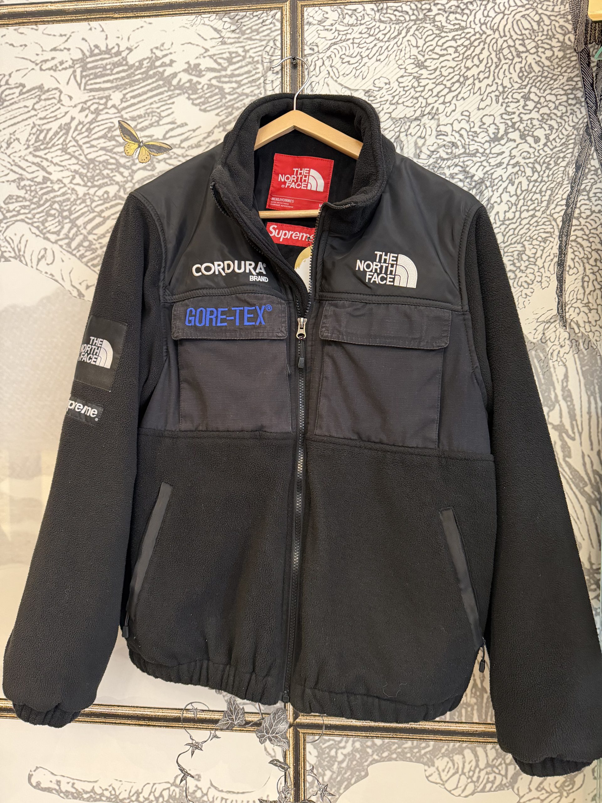 Veste issue de la collaboration Supreme x The North Face. Matières techniques Cordura et Gore-Tex, intérieur polaire chaud. Logos brodés, coupe streetwear, pièce collector.