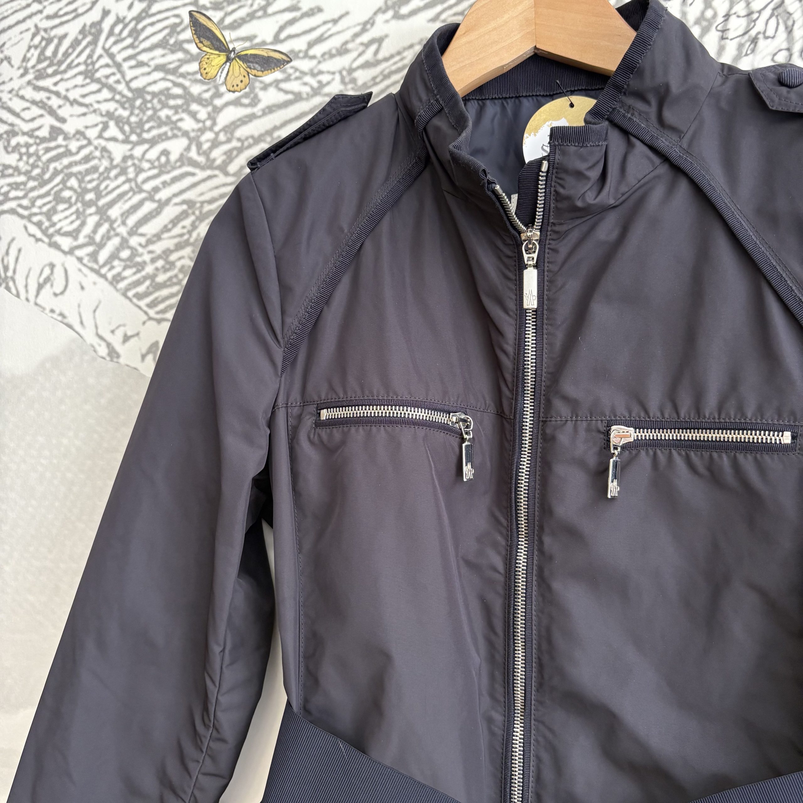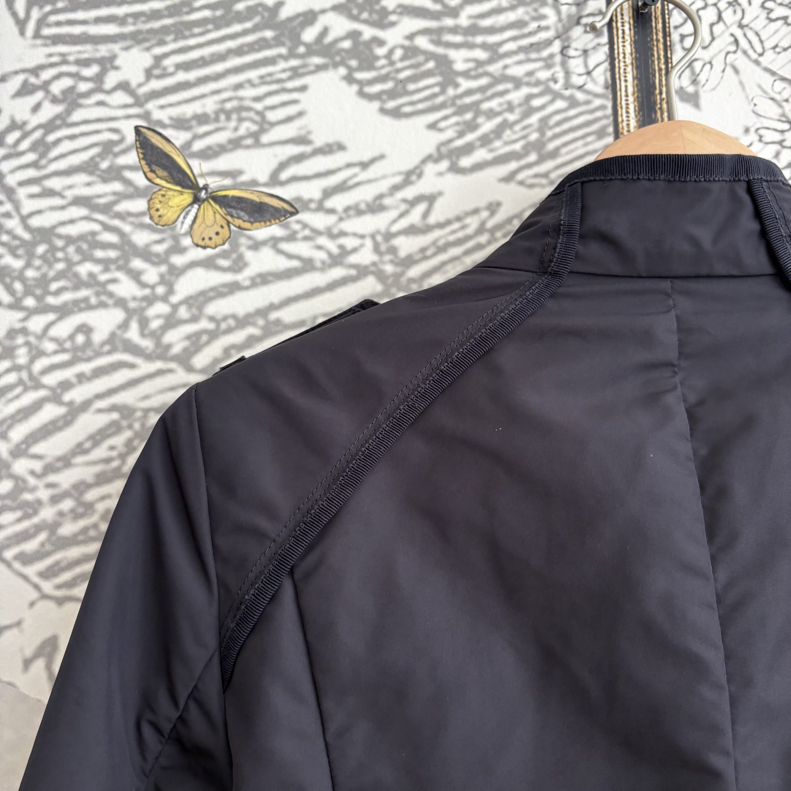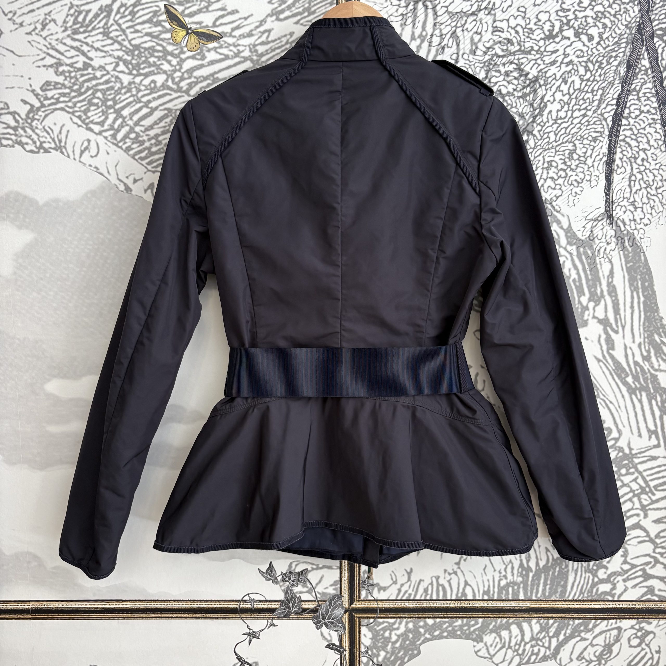 Coloris bleu foncé, coupe féminine soulignant la silhouette grâce à une ceinture à clip ajustable et un bas légèrement évasé. Un modèle à la fois chic et confortable, idéal pour conjuguer style et fonctionnalité
